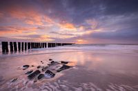 Westkapelle is voor mij 5 kwartier rijden, ik hoopte op een mooie zonsondergang. Naarmate ik dichterbij kwam begon mijn hoop te vervliegen. Het regende toen ik aankwam. Toch aan de slag, want na een eind rijden is het fijn even op het strand te staan. Vlak voor ondergang kwam er wat ruimte aan de horizon en kleurde de hele lucht…