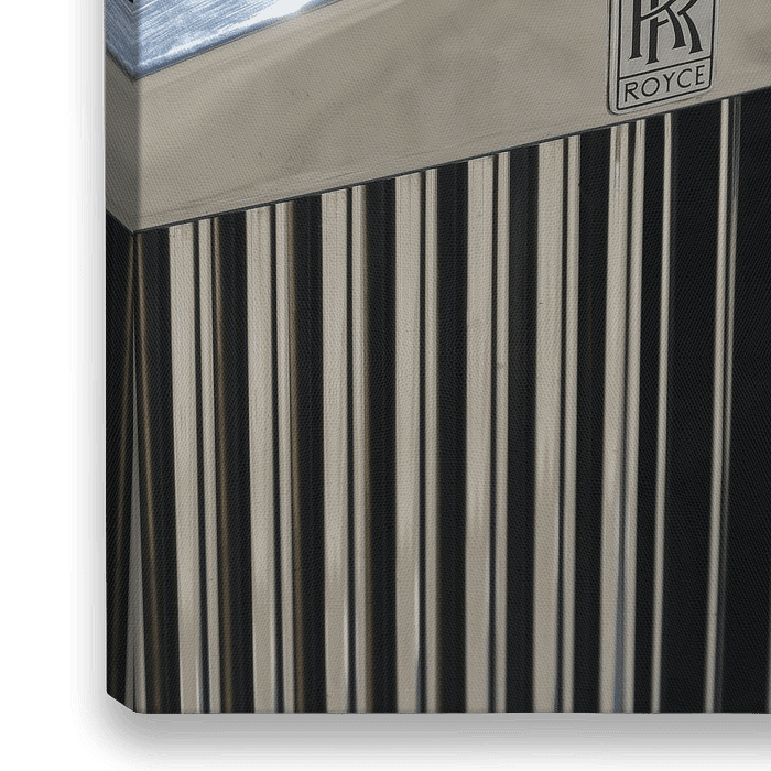 Klassieke foto van de grill van een Rolls Royce en de wereldberoemde Spirit of Ecstacy, ook wel 'Emily', ‘Silver-Lady’ of ‘Flying Lady’, genoemd. Naast de dubbele RR, hét beeld van dit dure automerk. In dit geval is het beeld zelfs verguld.