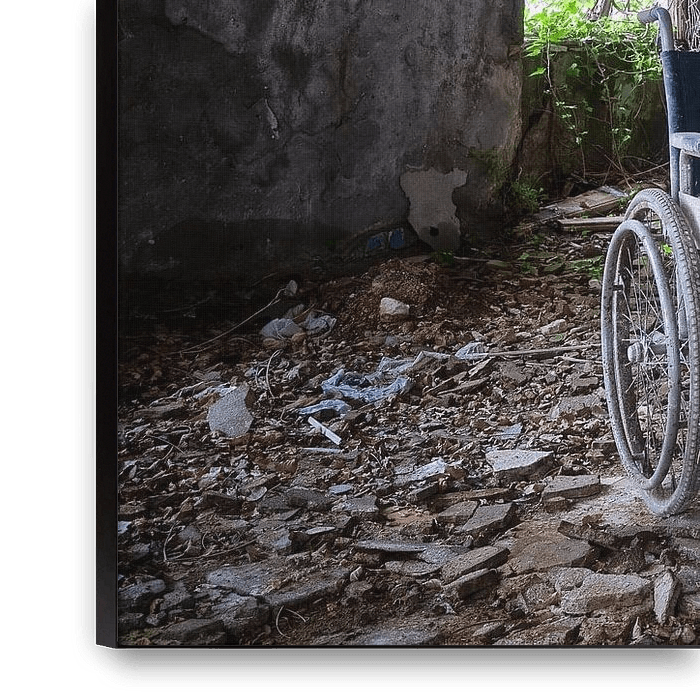Dit is een foto van een rolstoel die ik vond in een ruimte van een verlaten gebouw. Ik vraag me nog steeds een beetje af wat de rolstoel hier deed, want het gebouw was vroeger een muziekschool.