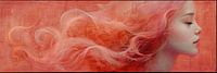 Rood Vrouwenportret | Crimson Tranquility - Stilistisch Vrouwprofiel, Rode Achtergrond