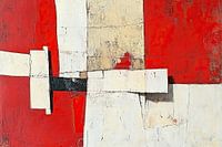 Rood Wit | Rode Rust - Dit abstracte schilderij kenmerkt zich door krachtige, geometrische composities in voornamelijk rood en wit, waarbij de ruwe textuur en subtiele zwartaccenten een dynamische maar rustgevende uitstraling creëren.