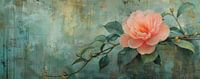 Details: bloem, blauw, goud, groen, schilderij, canvas, natuur, kunst, elegant, minimalistisch