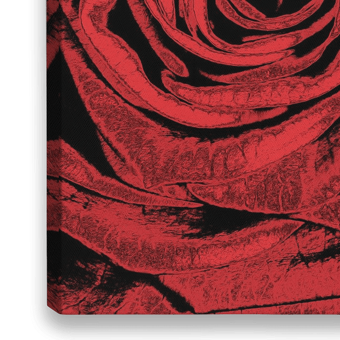 Digitale art van een prachtige roos in de rood met zwarte tinten. De zachte structuur en nerven van de roos geven diepte aan dit werk.