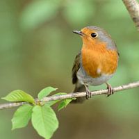 Over ‘Rotkehlchen ( Erithacus rubecula ) sitzt im Frühling in einem Busch, schaut keck zur Seite wildlife,’ van wunderbare Erde