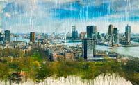 Gezien vanaf de Euromast richting de Kop van Zuid. Een geschilderde skyline van het prachtige Rotterdam met zichtbaar o.a. Hotel New York, De Rotterdam, de Erasmusbrug en de Willemsbrug, de Montevideo, World Port Center, New Orleans Vopak HQ, Harbour club Rotterdam (Parkzicht) en nog veel meer.