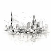 Koop de Rotterdam foto Rotterdam lijntekening van TheXclusive Art op canvas, aluminium dibond, (ingelijste) fotoprint, behang en ArtFrame, op maat geprint in Fine-Art kwaliteit.