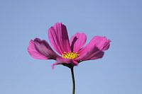 Koop dit bloemen kunstwerk Roze Cosmea bloem in de blauwe lucht van Cora Unk op canvas, aluminium dibond, (ingelijste) fotoprint, behang en ArtFrame, op maat geprint in Fine-Art kwaliteit.