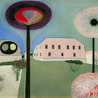 Koop dit landschapskunstwerk Roze huis met vreemde bloemen van Artclaud op canvas, aluminium dibond, (ingelijste) fotoprint, behang en ArtFrame, op maat geprint in Fine-Art kwaliteit.