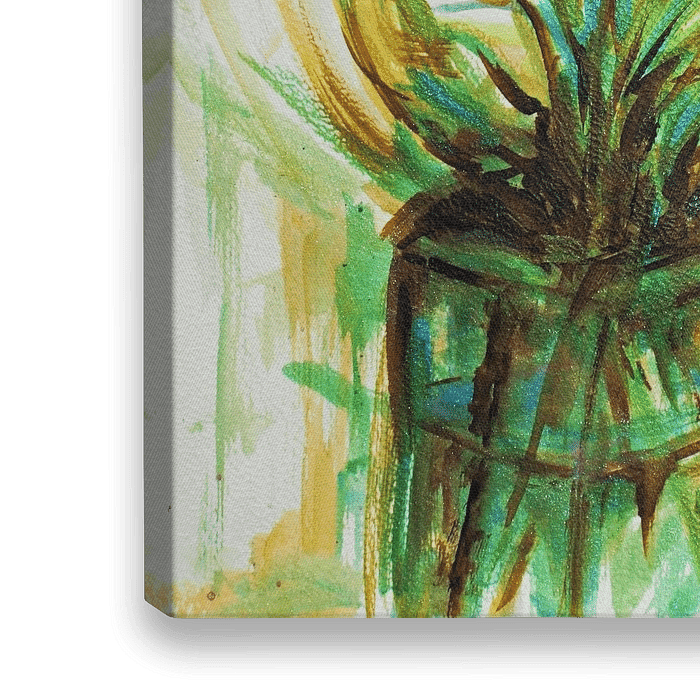 Tulp / Tulpen / Paars / Roze / Groen / Geel / Bolgewas / Bollenteelt / Voorjaar /Lente / Nederland / Glazen vaas / Groen glas / Transparant / Transparant glas / Effect / Glans / Stilleven / Illustratie / Handgeschilderd / Acrylinkt / Moderne kunst /