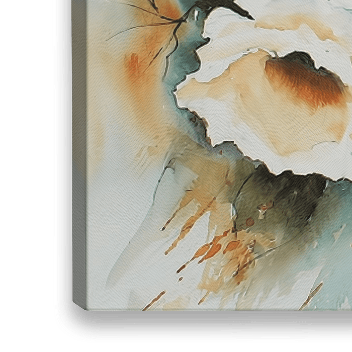 Dit aquarel straalt een delicate en dromerige sfeer uit, waarin bloemen met zachte, vloeiende penseelstreken tot leven worden gebracht. De lichte, bijna transparante bloemblaadjes, uitgevoerd in warme crèmekleuren en ijle blauwtinten, lijken haast op te lossen in de omringende achtergrond. De subtiele kleurovergangen en het speelse gebruik van water en pigment geven het werk een spontane, bijna etherische uitstraling.