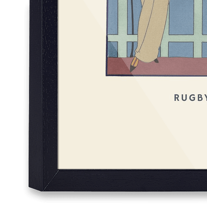 Een historische sport/mode prent in een modern jasje: "Rugby". Geïnspireerd door de art deco, een stijlbeweging die opkwam in de jaren twintig van de vorige eeuw. Nieuw zakelijkheid gemengd met moderne strakke lijnen en kleuren.