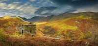 Ruïne in het ruige landschap, Lake district, Groot Brittannië.