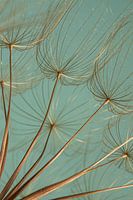 Koop dit bloemen kunstwerk Rust en eenvoud: Gouden pluisjes met turquoise achtergrond van Marjolijn van den Berg op canvas, aluminium dibond, (ingelijste) fotoprint, behang en ArtFrame, op maat geprint in Fine-Art kwaliteit.