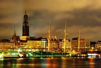 Uitzicht vanaf de haven over de Elbe tot de aanlegsteigers