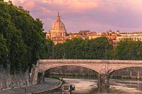 Een vroege zomerochtend in Rome bij de rivier de Tiber met uitzicht naar de Sant' Ambrogio e Carlo al Corso (San Carlo al Corso), een basiliek in Rome, Italië.