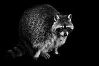 Over ‘Schattig pluizig diertje wasbeer, zwarte achtergrond’ van Michael Semenov