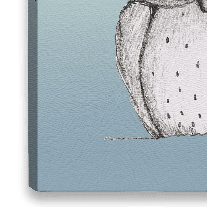 Een potlood tekening van een lief schattig uiltje. Ogen zijn digitaal ingekleurd en de achtergrond is digitaal toegevoegd.