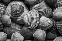Koop de foto Schelpen: zwart, wit en grijs van Marjolijn van den Berg op canvas, aluminium dibond, (ingelijste) fotoprint, behang en ArtFrame, op maat geprint in Fine-Art kwaliteit.