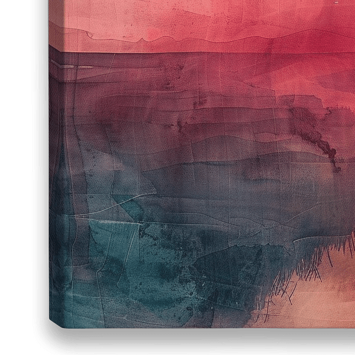 Dit betoverende kunstwerk trekt de aandacht met zijn krachtige kleuren en abstracte expressie. Het toont een landschap dat lijkt te dansen tussen realiteit en droom, met een weerspiegeling die het tafereel een mysterieuze diepte geeft. De gebruikte kleuren variëren van diepe blauwtinten en levendige roden tot zachte oranjes, die samen…
