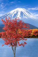 Koop dit landschapskunstwerk Schilderachtig meer Shoji met de indrukwekkende berg Fuji in de herfst van Melanie Viola op canvas, aluminium dibond, (ingelijste) fotoprint, behang en ArtFrame, op maat geprint in Fine-Art kwaliteit.