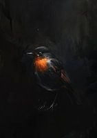 Schilderij Moderne Vogel - vogel schilderij oranje zwart