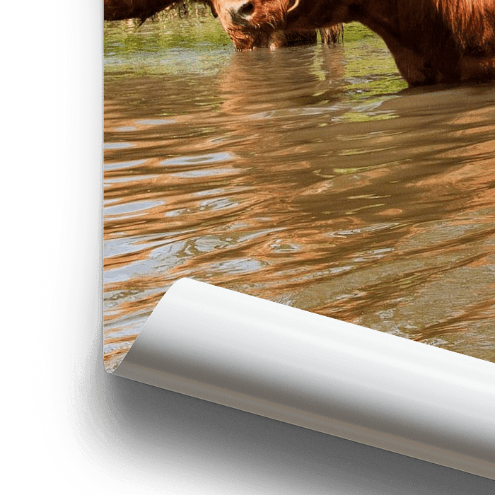 Koop dit landschapskunstwerk Schotse Hooglanders in het water van Fotografie Arthur van Leeuwen op canvas, aluminium dibond, (ingelijste) fotoprint, behang en ArtFrame, op maat geprint in Fine-Art kwaliteit.