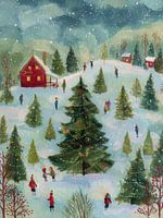 Koop dit landschapskunstwerk Sfeervol winterlandschap met versierde kerstboom en vrolijke dorpstaferelen van But First Framing op canvas, aluminium dibond, (ingelijste) fotoprint, behang en ArtFrame, op maat geprint in Fine-Art kwaliteit.