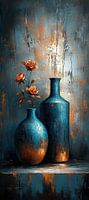 Silent Copper Echoes - Abstract schilderij met bloemen in vaas.