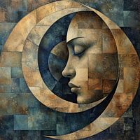 Silent Moon Gazing - abstract vrouwelijk portret, geometrische vormen, maanfases