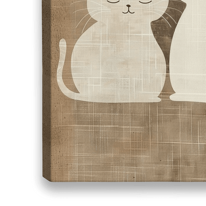 Silent Purr - Dit kattenschilderij is een charmante afbeelding van twee gestileerde katten tegen een achtergrond met een textuur die doet denken aan oud papier met een rasterpatroon. De ene kat is volledig in een donkerbruine tint weergegeven, terwijl de andere kat puur wit is, waardoor een sterk contrast ontstaat dat de vormen van de…