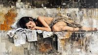 Koop dit abstracte kunstwerk Slapend kind op kranten van Frank Heinz als print op canvas, aluminium dibond, (ingelijste) fotoprint, behang en ArtFrame. Voor jou op maat geprint in Fine-Art kwaliteit.