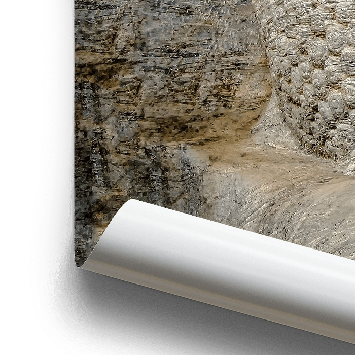 Hoofd van slapende Buddha in Sri Lanka, granieten sculptuur uitgehouwen uit de wand en 14 m. lang.