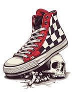 Sneaker op schedel met botten