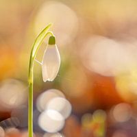 Doordat ik dit sneeuwklokje met tegenlicht heb gefotografeerd krijg je die mooie cirkels erachter. Dit heet bokeh.