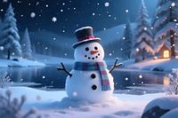 Een vriendelijke sneeuwpop staat in het midden van een besneeuwde open plek en ziet eruit als een stille bewaker van het winterseizoen. Zijn ronde lichaam is zorgvuldig gevormd uit drie compact opgerolde sneeuwballen; het oppervlak vertoont fijne, vers geperste structuren waarin individuele sneeuwvlokken nog zichtbaar rusten. Hij draagt…