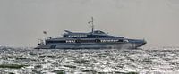 Snelboot Tiger van Rederij Doeksen op weg over de Waddenzee naar het eiland Terschelling of Vlieland met vakantiegangers en bewoners