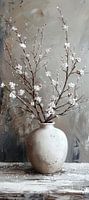 Details: stilleven, winter, modern, abstract, sneeuw, vaas, takken, wit, grijs, bruin