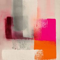 Soft Neon II is een fris abstract kunstwerk met grote kleurvlakken in fuchsia, fel oranje, bordeauxrood, lichtgrijs en zachte nude-tinten. De korrelige textuur en transparante lagen zorgen voor diepte, terwijl de strakke rechthoeken het geheel modern en grafisch houden. Het werk straalt energie uit, maar blijft door de zachte basis…