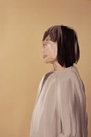 Abstract portret van een vrouw in naturele aardetinten met de titel: "soft side".