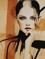 Een krachtig en elegant portret van een vrouw met een intense, heldere blik. De zachte huidtinten en warme aardekleuren gaan samen met expressieve penseelstreken en diepte, waardoor het werk zowel verfijnd als artistiek aanvoelt.