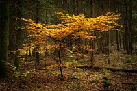 Tussen de naaldbomen stond deze felgekleurde loofboom. Door de redelijke kleurloze achtergrond viel deze extra goed op,