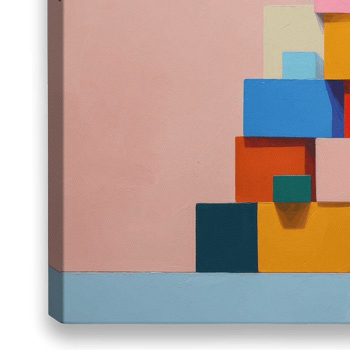 Speelse en kleurrijke abstracte kerstboom. Voor wie eens iets anders wil, ook heel leuk als alternatief voor een boom. Pastelkleurige pakjes zijn opgestapeld in de vorm van een kerstboom. Daarbovenop prijkt een kerstboom als piek. Een werk met een knipoog!