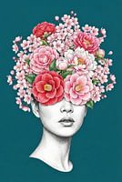 Dit moderne botanische portret van een jonge vrouw is een collage van afbeeldingen die de delicate, gedetailleerde weergave van bloemen met een strakke, grafische stijl combineert, wat resulteert in een echt uniek statement piece voor…