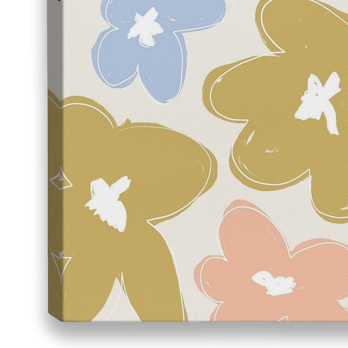Abstracte bloemen schets in roze, licht blauw en oker geel op een beige achtergrond. Moderne Boho illustratie.