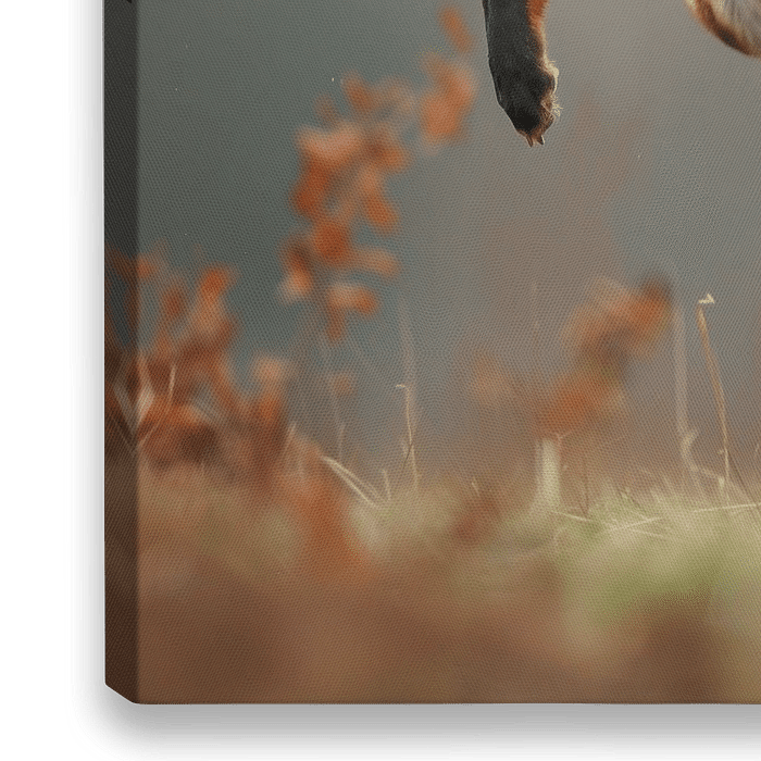 Koop dit landschapskunstwerk Springende vos van Poster Art Shop als print op canvas, aluminium dibond, (ingelijste) fotoprint, behang en ArtFrame. Voor jou op maat geprint in Fine-Art kwaliteit.