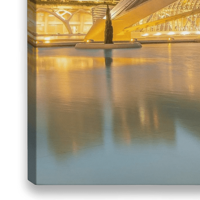 Stad van de Kunsten en Wetenschap in Valencia, Spanje met een mooie weerspiegeling in het water en een prachtige lucht.