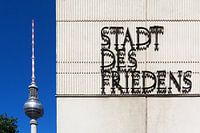 "City of Peace" is de extra naam voor een aantal steden in verschillende landen en continenten. Hier op een gevel in de Berlijnse Nikolai-wijk, op de achtergrond de Berlijnse TV-toren.