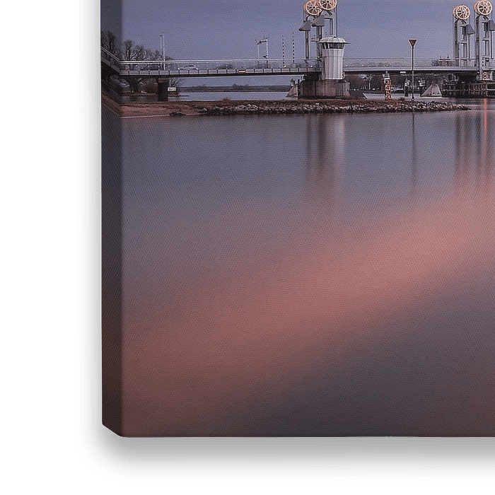 Stadsfront van Kampen bij zonsondergang. Er bevonden zich enkele gekleurde strepen in de lucht die, in combinatie met een lange sluitertijd, een mooi beeld hebben opgeleverd.