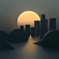 Koop dit abstracte kunstwerk Stadsgezicht in Zonsopgang - Licht over de Straten van Karina Brouwer op canvas, aluminium dibond, (ingelijste) fotoprint, behang en ArtFrame, op maat geprint in Fine-Art kwaliteit.