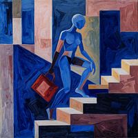 Dit schilderij ontvouwt zich als een gefluisterde dialoog tussen verleden en heden en is geïnspireerd op Marcel Duchamps iconische Nude Descending a Staircase. Maar waar Duchamp de fragmentatie van beweging onderzocht, richt mijn werk zich op de reis - een verhaal over doelgerichtheid en volharding. De figuur, in de schaduw en wankel,…
